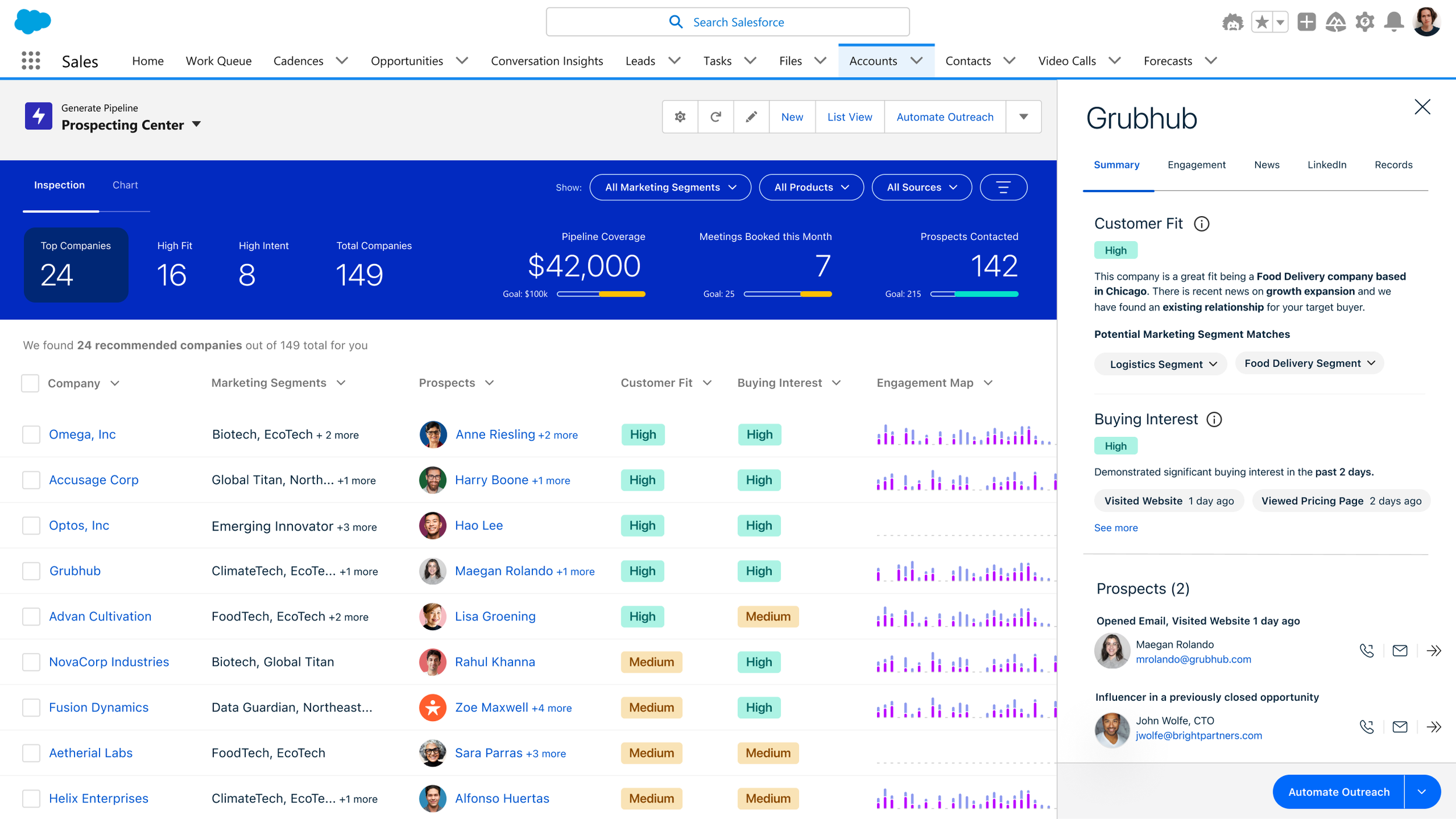 Led strategy and design for an AI-powered prospecting tool from concept pitch to Dreamforce announcement in under a year.